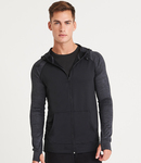 Hood and sleeves 92% polyester/8% elastane. DynamicCool™ responsive blended fabric. Contrast melange effect grown on adjustable hood and raglan sleeves. Taped neck. Full length zip. Front pouch pockets.